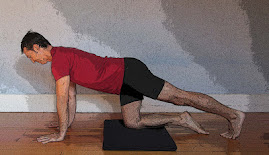 Maintaining all of the attention from the hands and knees position, slide one foot back, keeping your toes on the floor, and minimizing the amount of movement in the pelvis.