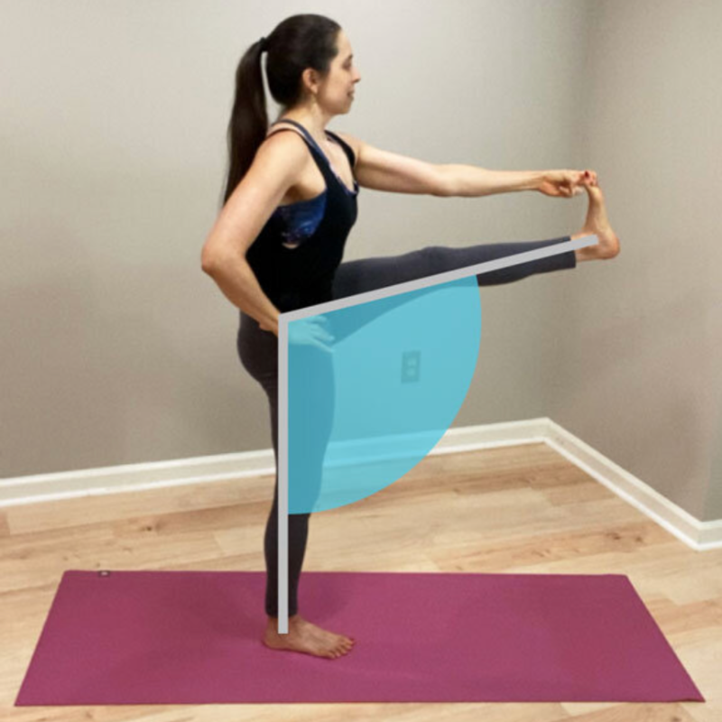 For a yoga example, consider standing big toe pose, a single-leg balance pose in which we hold one leg out in front of us, hooking the big toe with our fingers or a yoga strap: