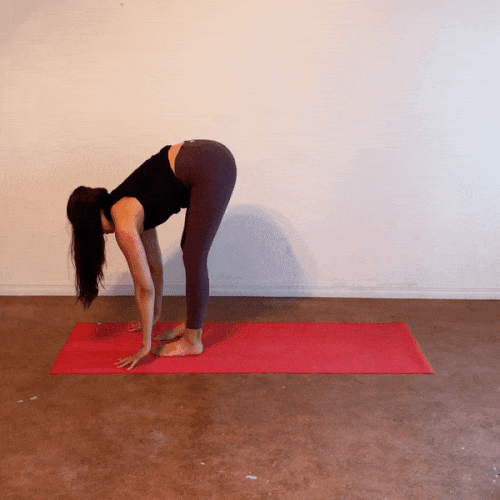 But this isn’t what’s happening in our yoga transition from a forward fold back into plank! We don’t land on our hands like we land on our feet in an upright jump.