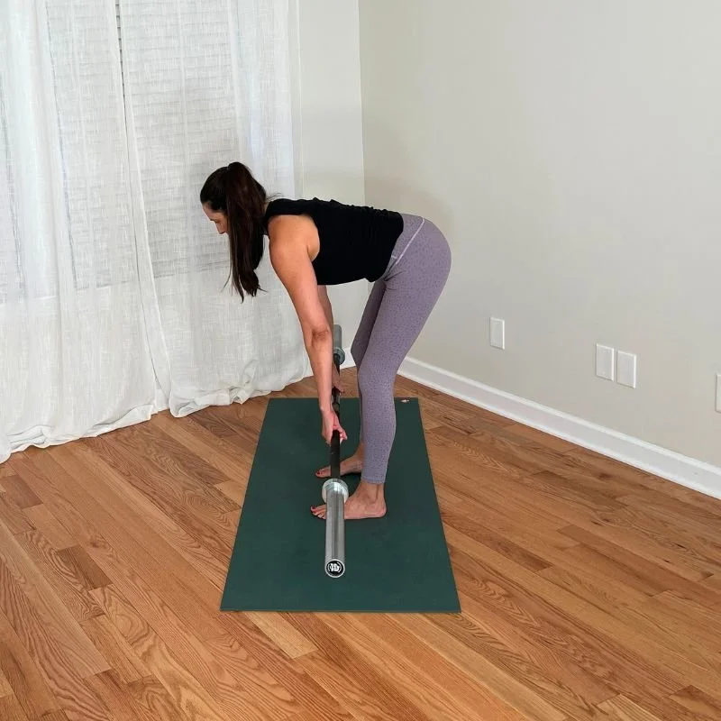 Exercise #1: Straight leg deadlifts – these strengthen the hamstrings in a stretched position and strengthen the low back muscles in a neutral-ish position: