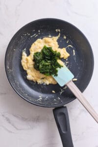 Cook scrambled egg and spinach, and melt cheese on top.