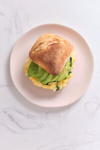 Even though this brekkie sandwich is a meatless option, it’s not short on nutrients and protein. The egg and fresh produce pack it full of health benefits! Plus, it includes avocado, which is high in fiber and healthy fats; and spinach, which is good for just about everything! I always make my vegetarian breakfast sandwich with a whole wheat English muffin and ditch the mayo.