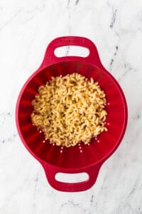 Cook the pasta according to package directions until al dente. Drain and set aside.