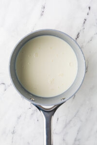 In a medium saucepan, melt butter over medium heat. Add flour and whisk for 3 minutes. Gradually add milk and cream, stirring until smooth.