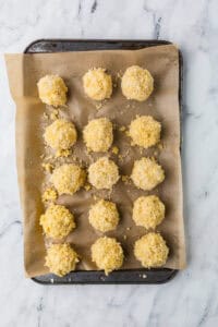 Shape into balls, coat in flour, egg, and breadcrumbs.
