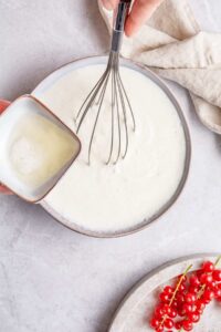 This recipe uses vanilla bean, which is the easiest way to make sure you’re getting the most vibrant vanilla flavor. Vanilla essence, on the other hand, is artificially-created and gets its flavor from vanillin, a cheap, lab-made vanilla substitute. Stick to using vanilla bean for the most natural vanilla flavor.