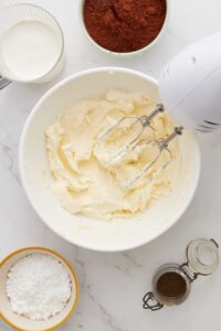 In a large mixing bowl, using a hand mixer or stand mixer, beat the softened butter until it is creamy and light in color, about 3 minutes.