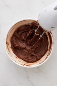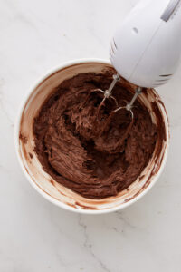 While at first it might seem like a good idea, doing so would change the consistency to be more of a liquid. Cocoa powder has just the right amount of dryness to firm up the frosting and keep it pipable. Don’t worry! It won’t be grainy; the cocoa powder mixes in smoothly with everything else.