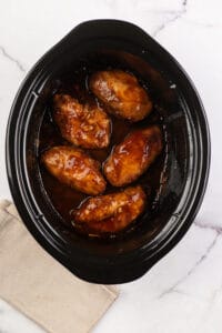 Once the chicken is fully cooled to room temp, place it in an airtight container and refrigerate for up to 4 days. You could also freeze it for up to 3 months. If you go this route, make sure to thaw it in the fridge overnight before reheating in the oven at 350 degrees F for 10 minutes, stirring occasionally. Feel free to add more sauce if it needs a little “juicing up.”
