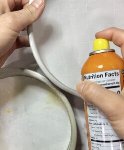 Preheat your oven to 350°F and line two 8-inch cake pans with parchment paper, spraying the sides with oil.