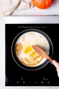 Combine and heat the milk mixture with spices.