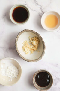 In a bowl, mix soy sauce, water, hoisin sauce, rice vinegar, garlic, 1 tablespoon cornstarch, and ginger.