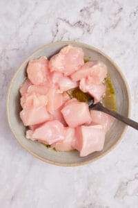 - 1 1/4 pounds boneless skinless chicken breasts cut into 1-inch pieces
