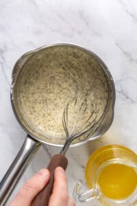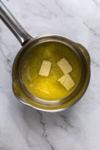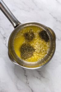 Add minced garlic and Italian seasoning, oregano, and thyme to the melted butter, and cook until fragrant, about 1 minute.