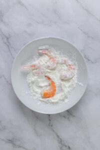 Pat the shrimp dry and toss them with cornstarch until evenly coated.