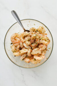 Add the shrimp to the bowl and toss to coat evenly with the marinade. Cover and refrigerate for 30 minutes to 1 hour to allow flavors to meld.