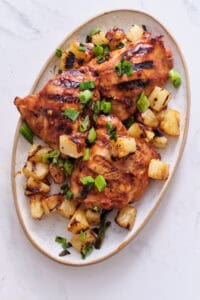 One extra flavor you don’t want to forget is the bed of pineapple rings served with the chicken. While the recipe calls for grilling the pineapple rings, you can also make Air-Fryer Pineapple Rings. Even though these pineapple rings are more of a dessert, their sweetness is a great complement for the chicken, whether you prepare them on the grill or in the air fryer.