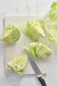 Yes, and that’s the beauty of this recipe. If you have a head of iceberg lettuce, you can quarter it and add to those wedges any veg or toppings you’d like. For a sweeter option, add dried cranberries, toasted walnuts, goat cheese, and this Sweet Onion Dressing. Alternatively, you could indulge in a little Tex-Mex flair by adding Black Beans, cheddar cheese, Salsa Ranchera, and this Avocado Ranch Dressing. Really, you can get as creative as you’d like to satiate your cravings, whatever they may be. Iceberg lettuce is like a blank slate that can enhance many different flavorful fixings.