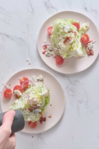 This salad can easily stand on its own, both structurally and as a meal. Serve your wedge salad with freshly ground black pepper and you’re good to go.