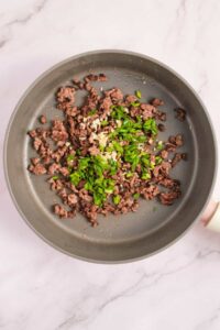 In a large skillet, cook the ground beef over medium heat until browned. Drain excess grease.