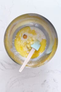 Add lukewarm milk, mashed potatoes, softened butter, sugar, kosher salt, and 1 egg to the yeast mixture. Mix well.
