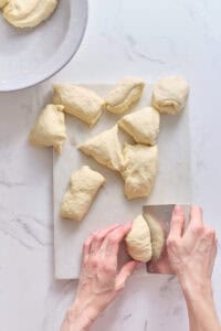 Punch down the dough and divide into 24 pieces. Shape each piece into a ball and place on greased baking sheets.