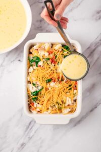 Pour egg mixture over, refrigerate, then bake.