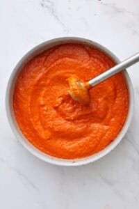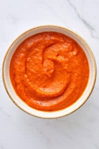 If you are short on time or want to complete some steps in advance, you can chop your onion, mince your garlic, and roast a red pepper the day before making this dish. Refrigerate them in airtight containers until ready to use. Once cooked and blended, bravas sauce will last in the refrigerator in a jar for up to 4 days. Always let the sauce cool to room temperature before refrigerating. You can also freeze it for up to 3 months in freezer-safe containers. Defrost the sauce overnight in the refrigerator before reheating.