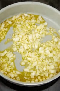 Cook onion and garlic in olive oil.
