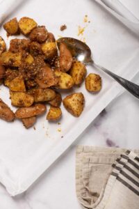Let the potatoes cool to room temperature, and then store in an airtight container in the fridge for up to 5 days. For longer storage, place them in a freezer-safe container and freeze for about 3 months. Let them thaw in the fridge overnight. Reheat by popping them in the oven at 350°F for 10-15 minutes. If you’d like them extra crispy, add 3-5 minutes more baking time.