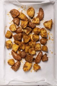 Preheat oven to 400°F. Spread seasoned potatoes in a single layer on a baking sheet.