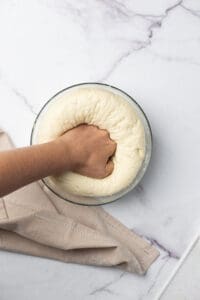 Place dough in a greased bowl, cover, and let rise until doubled, about an hour.