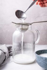 Pour the blended mixture through a fine mesh strainer or cheesecloth into a pitcher, discarding any solids.