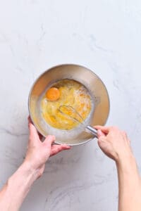 Combine eggs with seasonings and milk.