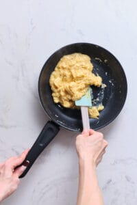The best advice I can give to somebody making cheesy scrambled eggs is to try out different varieties of cheese. You can’t go wrong with cheddar, as the recipe states. However, there are lots of other options available. For example, Gruyère cheese often goes well with eggs. I also enjoy putting just a sprinkle of Parmesan on my eggs. If you end up making cheesy scrambled eggs regularly, you might want to experiment with feta, goat cheese, or ricotta to see if you like what they add to the dish.