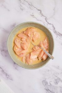 Add chicken strips to the marinade, ensuring they are well coated. Cover and refrigerate for at least 30 minutes or up to 2 hours.