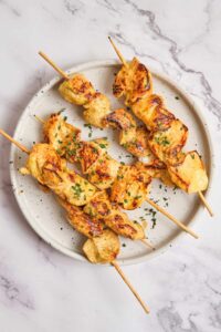 Yes, soak wooden skewers in water for 20–30 minutes before grilling. Place a heavy object (like a plate) on top to keep them fully under the water. Soaking prevents the skewers from burning or catching fire over high heat. It’s a simple step for safer and more effective grilling!