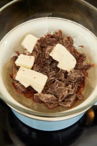 Combine chopped dark chocolate and butter in a heatproof bowl. Set over a pot of simmering water (double boiler method) and stir until melted and smooth.