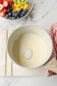 In a saucepan, combine milk, heavy cream, and granulated sugar. Heat over medium until the sugar dissolves and mixture simmers.