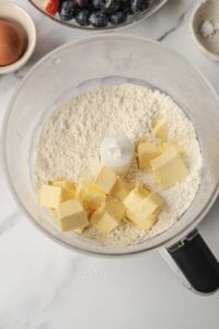 Pulse flour, powdered sugar, and salt in a food processor. Add 1/2 cup cubed butter and pulse until crumbly. Add beaten egg and almond extract; pulse until dough forms.