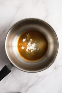 The ingredients can vary, but in our recipe, the sauce is made up of chicken broth, cornstarch, mirin and soy sauce. Other recipes may include Chinese cooking wine, oyster sauce or sesame oil.