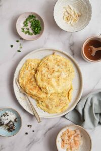 It’s usually best to serve shrimp egg foo young on a bed of Steamed Rice. Naturally, if you’re a fan of Chinese-American food, you may want a side dish to have with your shrimp egg foo young like a Chinese Noodle Soup or these Crispy Air-Fryer Egg Rolls. Finally, if you want even more seafood to complement the shrimp, you could try making Crab Cake Egg Rolls.