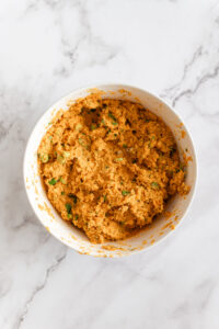 Sweet potatoes are packed with not only flavor but nutrients too. There’s even a tiny amount of protein in this dish from the egg and Greek yogurt, even more if you choose to top it with extra yogurt. Like I mentioned previously, you can use gluten-free breadcrumbs if that’s a better fit for your diet. You can also make this recipe vegan by replacing the Greek yogurt with cashew or coconut yogurt and using a plant-based egg substitute such as flax seed. Simply whisk together 1 tablespoon of ground flax seed with 2 tablespoons of water; then let it sit for 10 minutes before adding to the mix. This will act as your binder.
