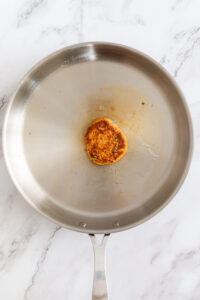 Heat a skillet over medium heat and add vegetable oil. Cook each side for about 6 minutes until golden brown and crispy.