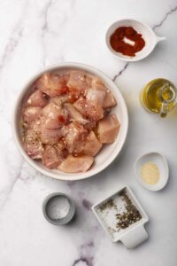 - 1 pound boneless skinless chicken breasts cut into 1-inch pieces