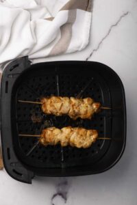 Preheat the air fryer to 400°F. Place the chicken skewers in the air fryer basket, ensuring they do not touch.