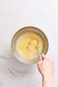 While phyllo bakes, in a medium bowl, whisk together milk, eggs, 1 cup granulated sugar, and vanilla extract.