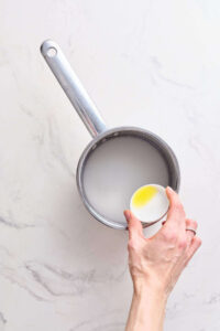 In a saucepan, combine 1 cup water, 1 cup granulated sugar, and lemon juice. Simmer until thickened, about 10 minutes.