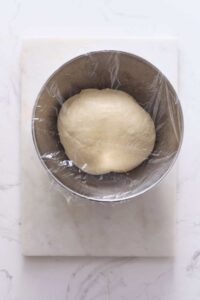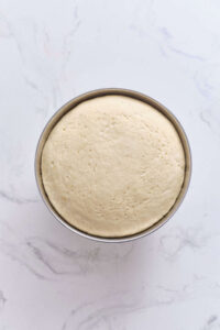 Place the dough in a greased bowl, cover with plastic wrap, and let it rise in a warm place until doubled in size, about 1 1/2 hours.