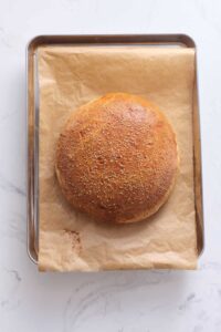 Bake in a preheated oven at 375°F for 25-30 minutes or until golden brown. You can also give the loaf a light tap on the top – if it sounds hollow, it’s done.